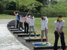 ゴルフ場併設の練習場にてショット、アプローチ、バンカー、パター練習等を行います。